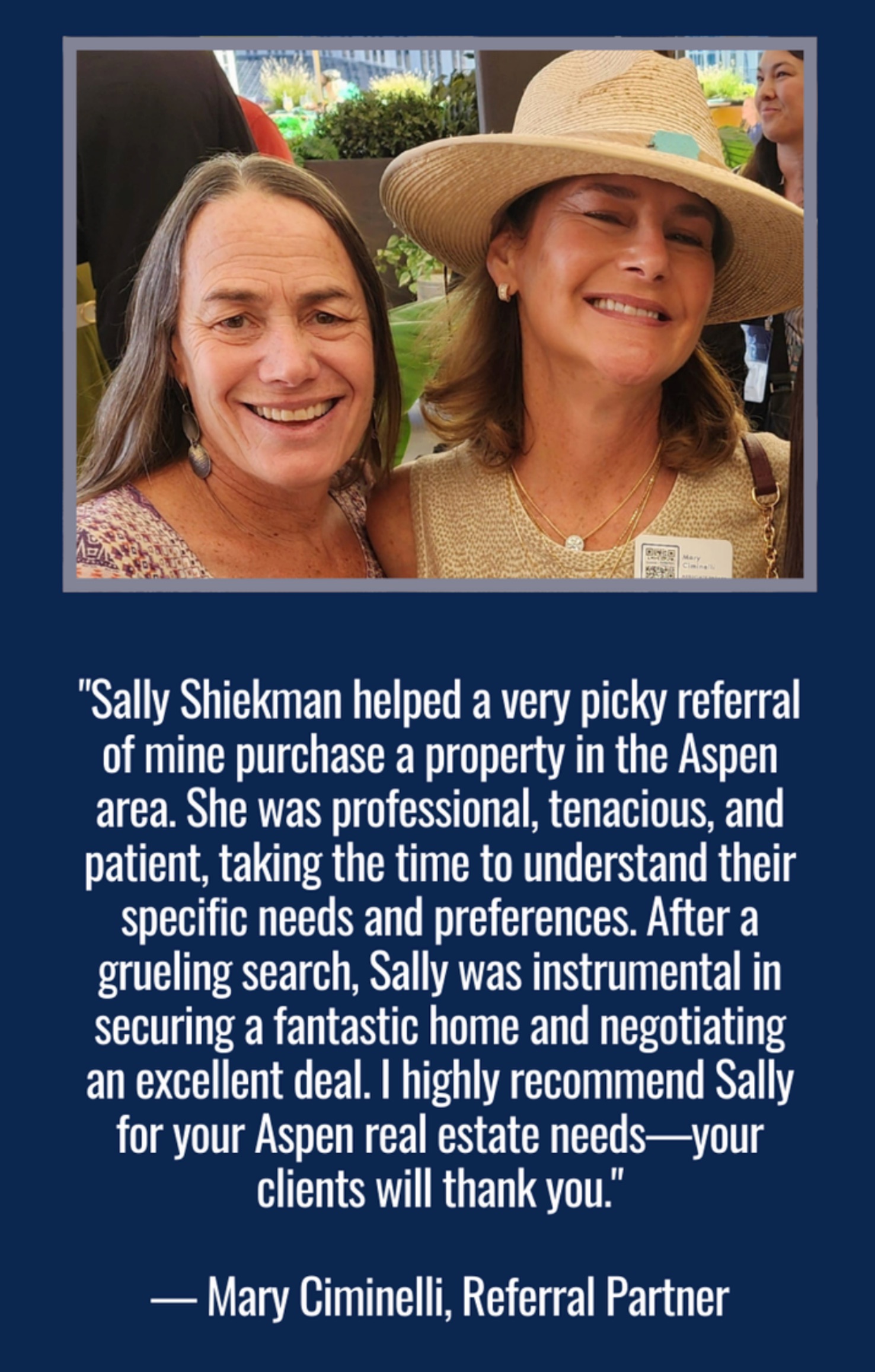 Sally was there with guidance throughout the process of purchasing our home in Snowmass Village. She is knowledgeable about the markets from Aspen to down-valley. We definitely recommend Sally for anyone who is looking for a real estate professional.