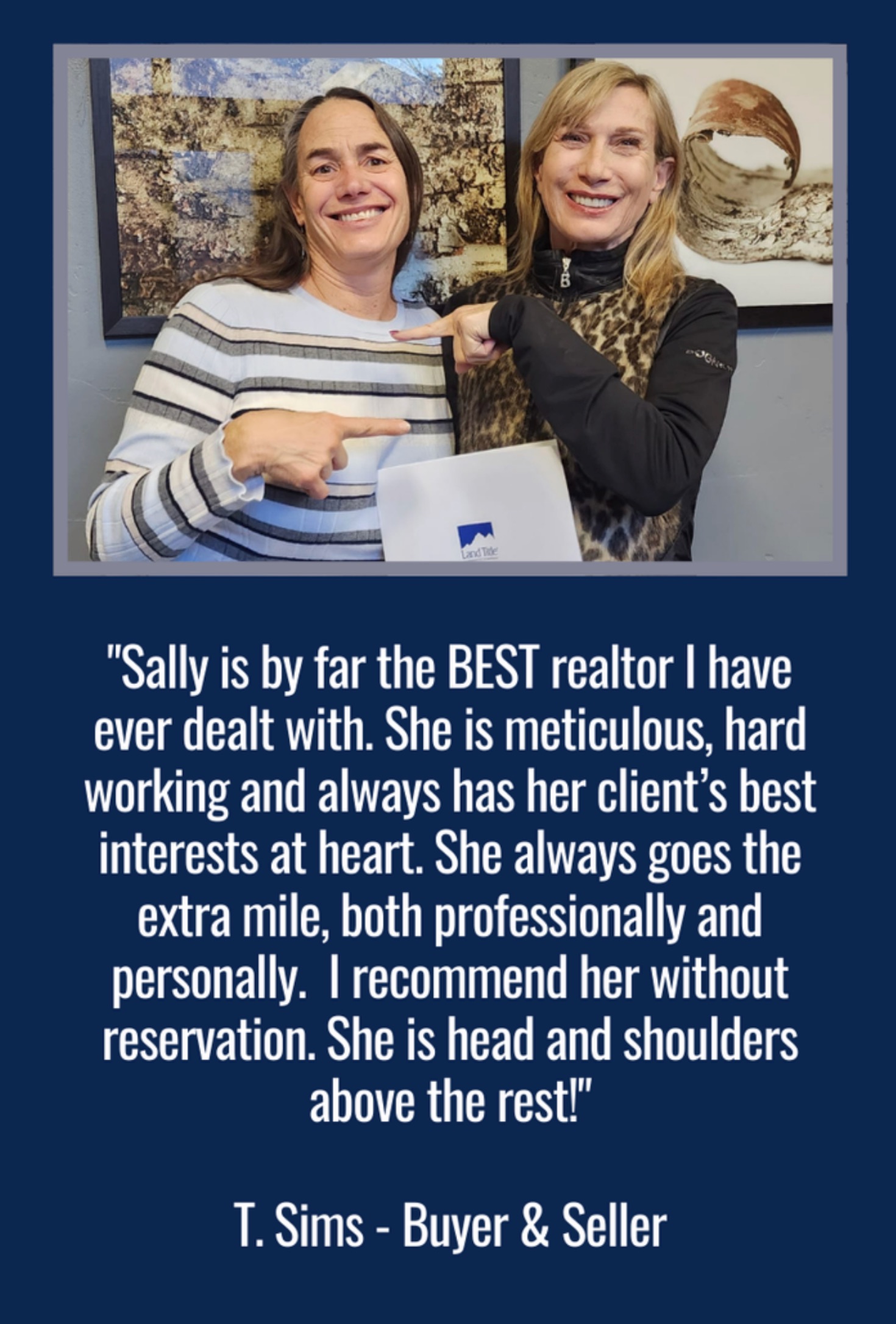 Sally recently helped my wife and I to purchase a building site in the Missouri Heights area. Sally made the purchase a great experience; she showed us much of what the valley had to offer over a several days time frame. Sally presented us with information on what was currently on the market. We have since purchase a property and are already projecting an increase in value. Sally has kept in touch since the purchase providing valuable information.